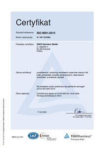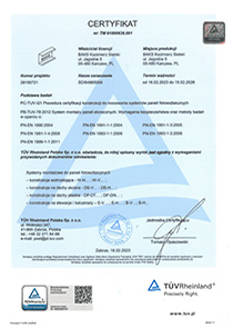 Certyfikat PC-TUV-I21 Dla konstrukcji nośnych pod Panele Fotowoltaiczne