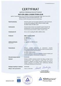 Certyfikat – na zgodność Zakładowej Kontroli Produkcji 2627-CPR-1090-1