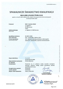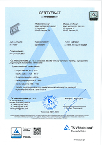Certyfikat PC-TUV-I21 Dla konstrukcji nośnych pod Panele Fotowoltaiczne