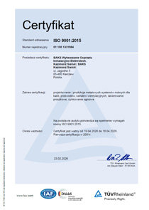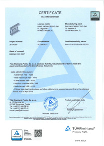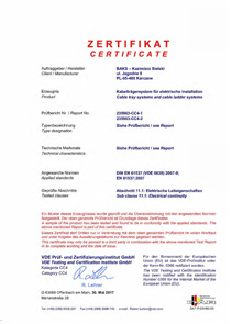 Certyfikat – na zgodność produkowanych tras kablowych z normą PN-EN 61537 2007