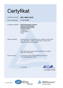 Certyfikat dot. systemu zarządzania środowiskowego ISO 14001 2015