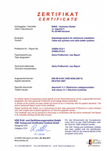 Certyfikat i raport VDE – KORYTA+KLIKI, DRABINY+KLIKI, CEOWNIKI+KLIKI EN_DE
