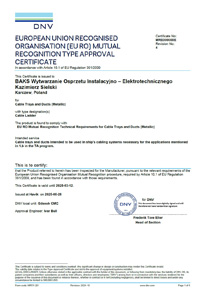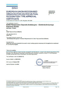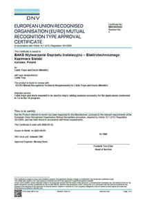 Certyfikat z badań systemów koryt i drabin morskich dopuszczonych do użycia na statkach i platformach 2