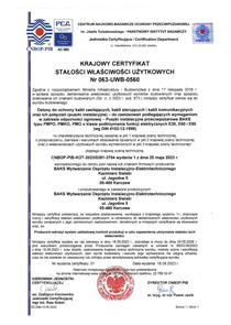 Krajowy Certyfikat Stałości Właściwości Użytkowych NR 063-UWB-0560