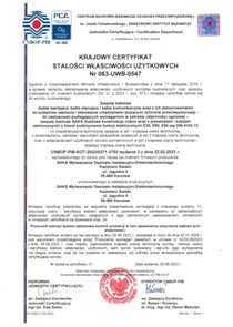 Krajowy Certyfikat Stałości Właściwości Użytkowych Nr. 063-UWB-0547
