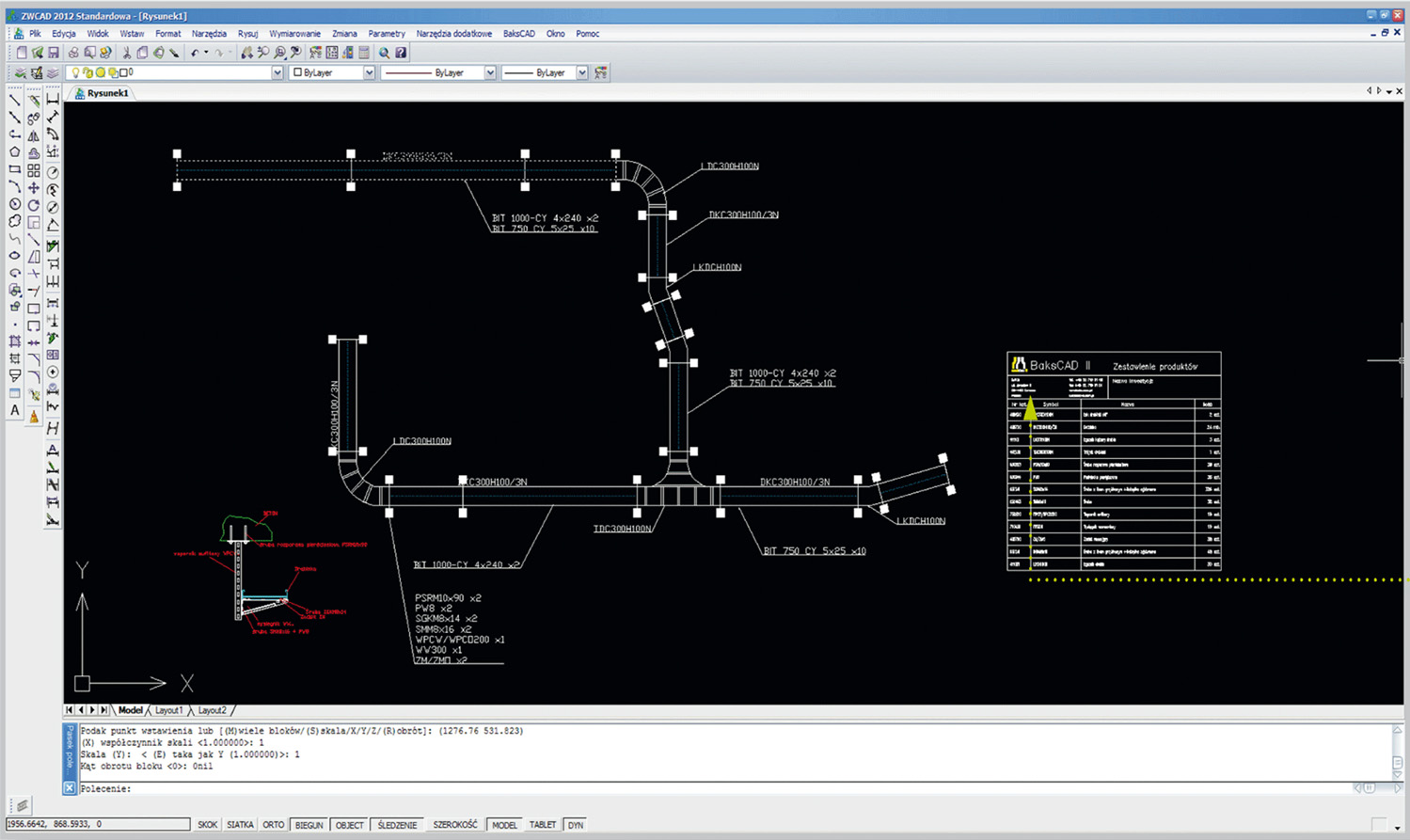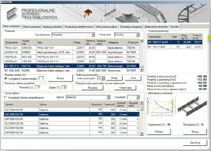 Oprogramowanie w formie nakładki na popularne środowiska CAD (AutoCAD, BricsCAD, ZWCAD, GstarCAD), pozwalające na projektowanie tras kablowych i generowanie zestawień materiałowych w oparciu o produkty BAKS.